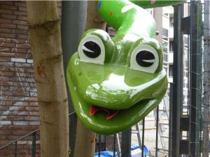 Op verzoek van buurtbewoners bij het Coehoornpark te Arnhem is er door Petiet Vezelversterkte Kunststoffen een grote polyester Waterspuwer gemaakt.