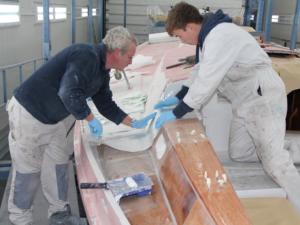 Gouden Draad, Koopmans 40 ft. bouw woodcore epoxy met detail fouten in het dek en de opbouw.
