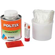 Poltix Reparatieset bestaat uit een set met polyesterhars, glasmatje, mengbeker en spatel. Geschikt voor het uitvoeren van kleine reparaties aan polyester boten, tanks, caravans, enz. Snelle doorhardi